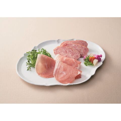 「ポークローフ、生ハムセット」 国産豚を使用した香味豊かなポークローフと、低温でじっくり仕上げた生ハムのセットです。