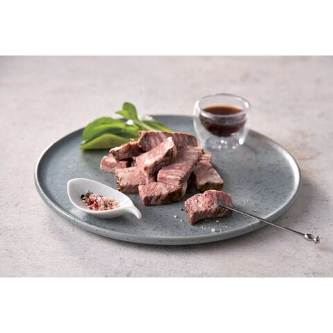 「真空低温調理のローストビーフ」 真空低温調理製法でじっくり熱を入れて作りました。お好みの厚さに切ってお召し上がりください。