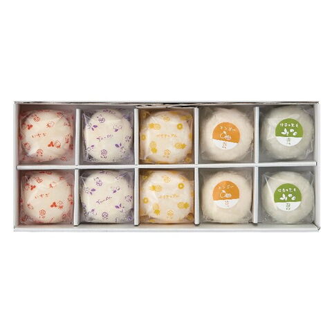 【数量・内容】生クリームいちご大福・生クリームブルーベリー大福・生クリームパイナップル大福・生クリームマンゴー大福・黒豆抹茶生クリーム大福各65g×2