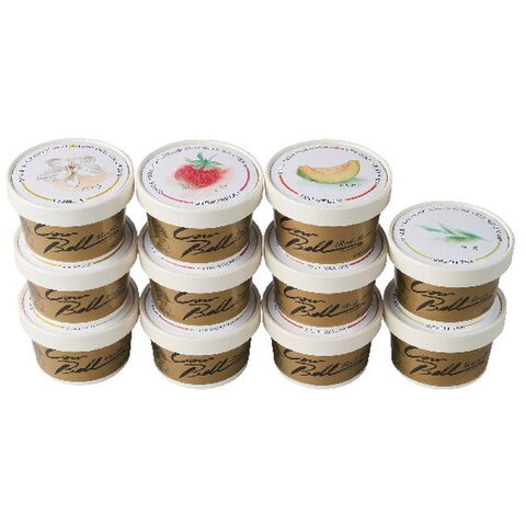 「北海道カウベルアイスクリーム詰合せ」 北海道十勝産の生乳を使用し、重厚感ある味わいに仕上げました。バニラ、ストロベリー、赤肉メロン、抹茶の4種類の味をお楽しみください。