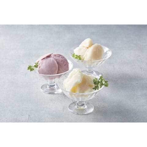 「余市フルーツシャーベット」 十勝産の生乳と余市産のフルーツを使用した北海道の恵みが詰まったリッチな3種のシャーベットです。
