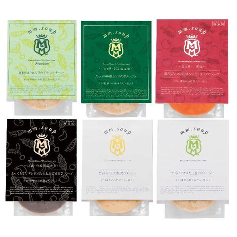 【数量・内容】蓮根とほうれん草のグリーンポタージュ・たっぷり蓮根とゆずのポタージュ・潮風育ちの垢田トマトとトラフグのスープ・ふっくらミヤギシロメ大豆と黒ごま豆乳スープ・とうもろこしの贅沢ポタージュ・アスパラガスと玉葱のポタージュ各180g