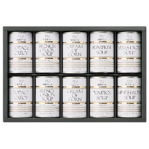 「東京・帝国ホテル スープ缶詰詰合せ」 1890年開業の『帝国ホテル』。歴史が作り上げた伝統のスープ。コーンの甘みや野菜の旨みを活かしてつくりました。