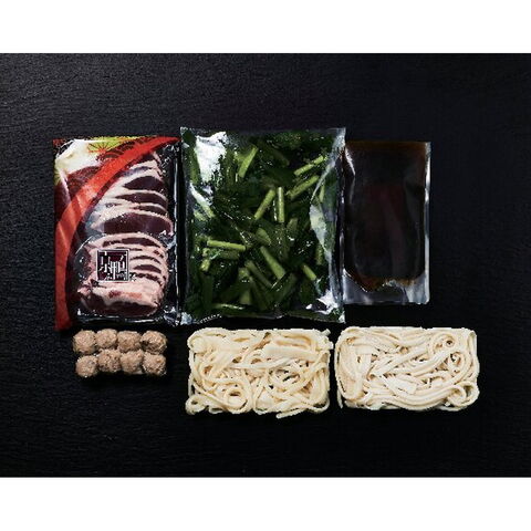 【数量・内容】京鴨スライス(ロース・モモ)250g、京鴨つくね(8個入)、カット九条葱250g、冷凍うどん×2、いしがま亭すき鍋割り下×1※パッケージデザインが変更になる場合がございます。