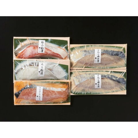 【数量・内容】さわら西京漬90g×2、紅鮭粕漬・キングサーモン西京漬・たら粕漬各90g