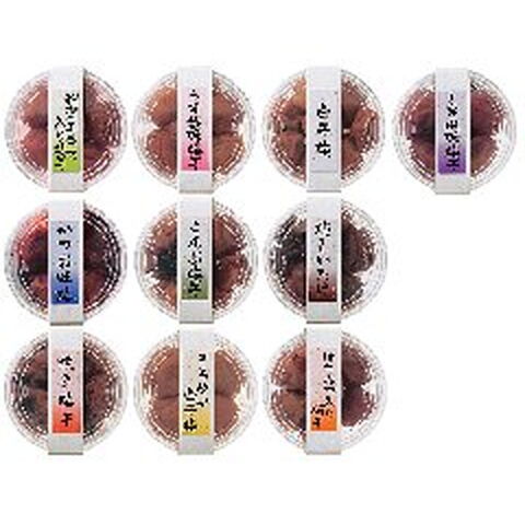 「紀州南高梅 味いろいろ 10ヶ入」 紀州南高梅の10種の味を取り揃えました。ちょっとずつ、いろいろ味わうのも楽しいもの。毎日の食卓を彩る梅干です。