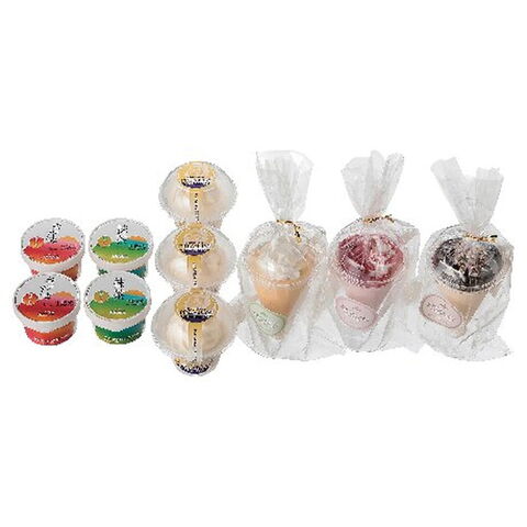 【数量・内容】プレミアムソフトクリーム120ml×3、十勝パフェ(ミルク&チョコ・メロンシャーベット・ストロベリー各200ml)、もちもちアイス(きなこ・抹茶各80ml×2)