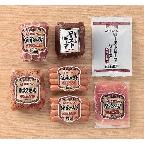 「伝承の響詰合せ」 長年培ったハム造りの技を用いて丹念に造り上げました。バラエティーに富んだ美味しさを詰合わせてお届けいたします。