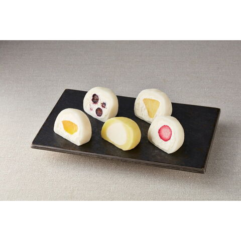 「生クリーム大福・チーズクリーム大福詰合せ」 とろけるようなお餅になめらかな北海道産の濃厚生クリーム、中心に優しい酸味のフルーツを閉じ込めました。果実、生クリーム、お餅の絶妙なバランスをお楽しみください。