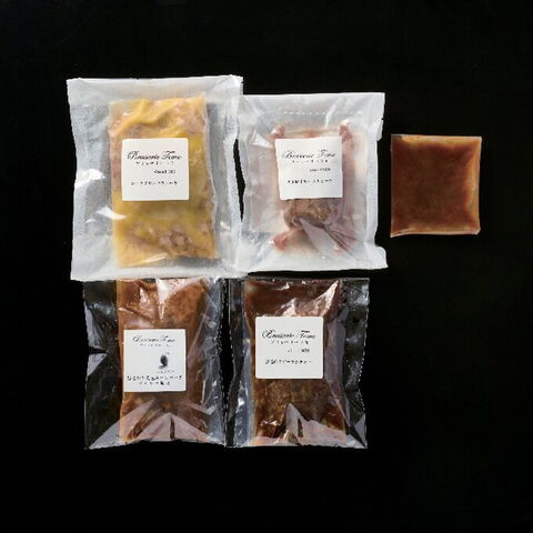 【数量・内容】黒毛和牛ローストビーフ100g、ローストビーフソース30g、黒毛和牛煮込みハンバーグマルサラ風味200g(固形量130g)、黒毛和牛ビーフシチュー150g、グリルドポークステーキ150g