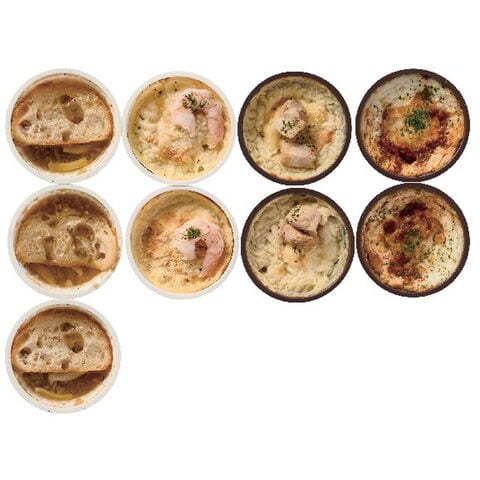 【数量・内容】エビとフジッリのグラタン・チキンとフジッリのグラタン各130g×2、ミートソースドリア145g×2、オニオングラタンスープ130g×3