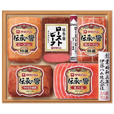 「伝承の響詰合せ」 長年培ったハム造りの技を用いた「伝承の響」シリーズ。いろいろな料理に幅広くご活用いただけます。