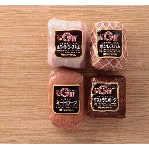 【数量・内容】ホワイトロースハム400g、ボンレスハム340g、ミートローフ・パストラミポーク各280g
