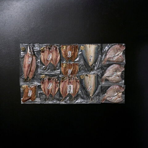 【数量・内容】あじ開き・あじみりん×各4、鯛開き×3、昆布干しあじ開き・ぶりみりん・かます開き・さば開き×各2