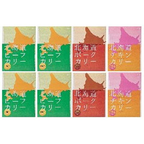 【数量・内容】北海道十勝牛のビーフカリー200g×4、北海道産阿寒豚のポークカリー・北海道中札内鶏のチキンカリー各200g×2