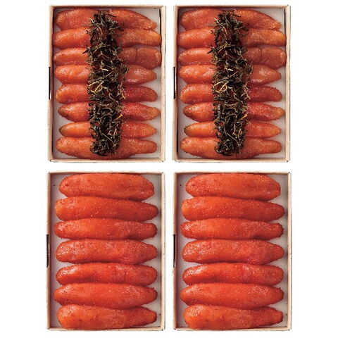 【数量・内容】幸村英商店の昆布漬辛子明太子・海産物専門原口商店の辛子明太子各180g×2