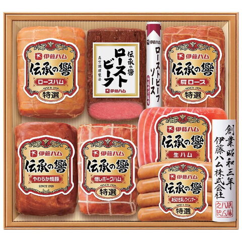 「伝承の響詰合せ」 長年培ったハム造りの技を用いた「伝承の響」シリーズ。いろいろな料理に幅広くご活用いただけます。