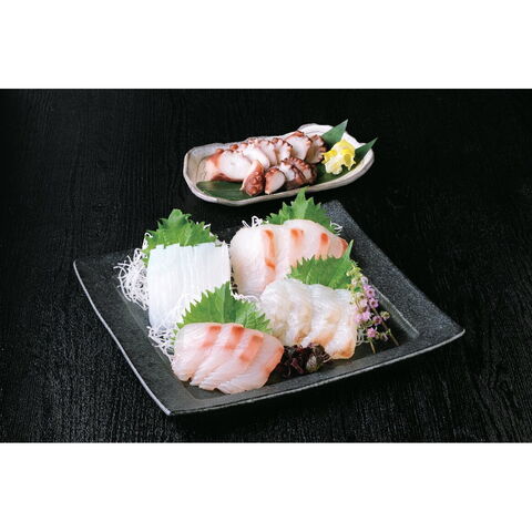 【数量・内容】刺身盛合せ(アオリイカ・ヒラマサ各100g×2、真蛸味噌漬(生食用)200g、真鯛・平目各100g)