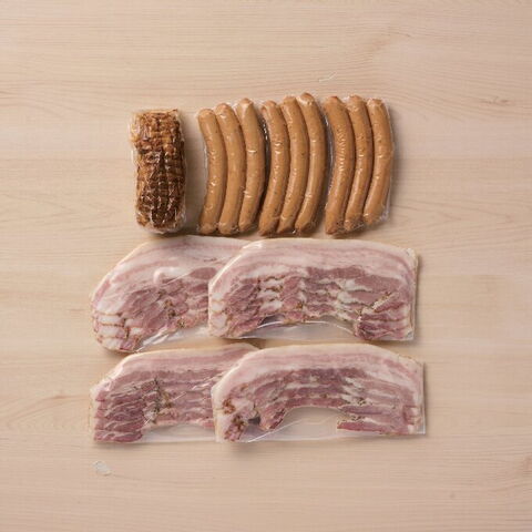 【数量・内容】無塩せきウィンナー120g×3、無塩せきバラベーコン90g×4、無塩せきバラチャーシュー250g×1