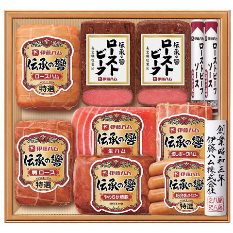 「伝承の響詰合せ」 長年培ったハム造りの技を用いた「伝承の響」シリーズ。いろいろな料理に幅広くご活用いただけます。