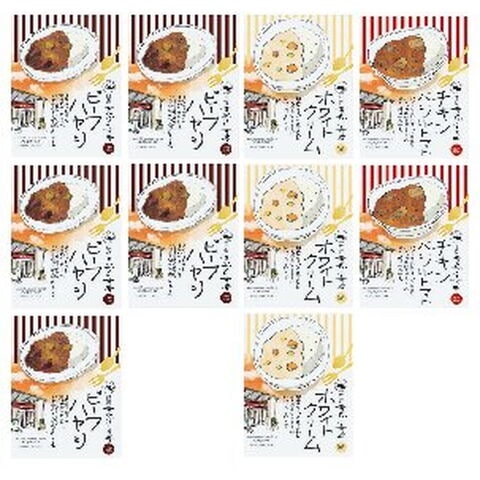 【数量・内容】ビーフハヤシ200g×5、ホワイトクリーム200g×3、チキンバジルトマト200g×2