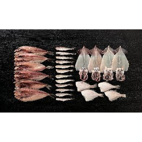 【数量・内容】いか一夜干し(2枚入)・宗八かれい(2枚入)・こまい一夜干し(6尾)×各2、ほっけ開き(2枚入)×3