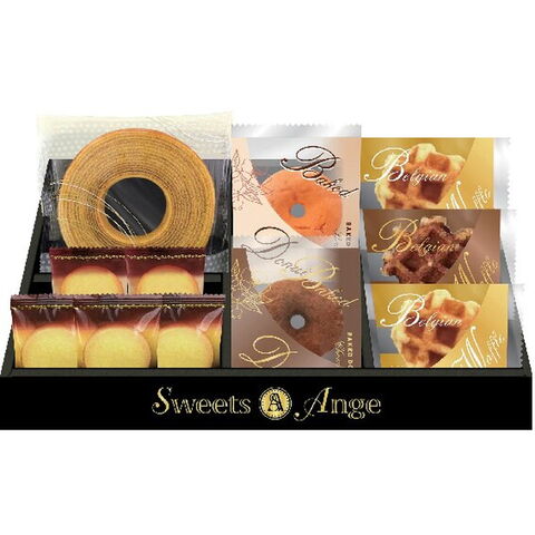 【数量・内容】ベルギーワッフル(プレーン)×2、ベルギーワッフル(ショコラ)・ミルクバウムクーヘン・ベイクドドーナツ(ストロベリー・ショコラ)×各1、プレーンクッキー×5