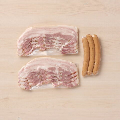 【数量・内容】無塩せきウィンナー120g×1、無塩せきバラベーコン90g×2
