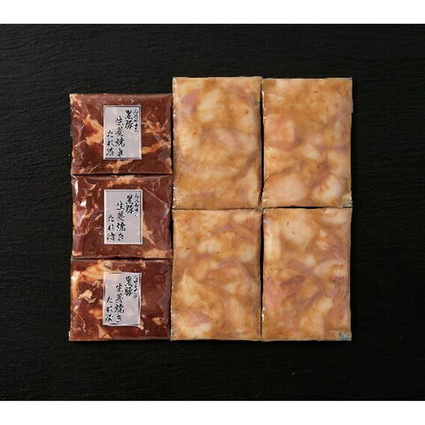 「国産牛ホルモン・黒豚生姜焼用たれ漬詰合せ」 独特の食感をもつ国産牛ホルモンのたれ漬と、鹿児島県産黒豚を食卓で人気の生姜焼きのたれ漬に仕上げました。