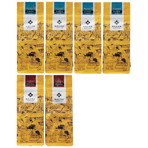 【数量・内容】クラシック200g×4(中挽き、粉)、オリジナル200g×2(中挽き、粉)