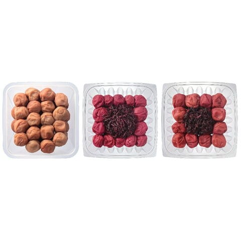 【数量・内容】ハチミツ入梅干730g(2~5L粒)塩分約7%、しそ漬梅干310g(梅干280g、しそ葉30g)M~3L粒、塩分約18%、うす塩味しそ漬梅干310g(梅干280g、しそ葉30g)M~3L粒、塩分約8%