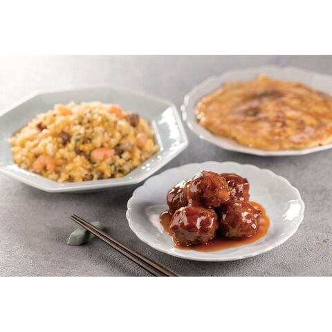 【数量・内容】広東風チャーハン200g・肉焼売170g・中華丼の具150g・海老玉150g・肉団子甘酢煮130g×各3