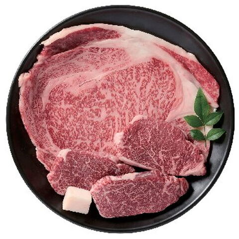 「近江牛 ステーキセット」 かつて将軍家にも献上された400年に及ぶ歴史を誇る近江牛。30~32ヶ月を目安に肥育された雌牛の肉質はきめ細かく、香りは芳醇、とろけるような風味が広がります。