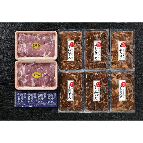 【数量・内容】味付ラムロース・味付マトンロース・味付ラムショルダー各200g×2、生ラムたれ付セット(ラムショルダー300g×2、生ラムタレ30g×4)