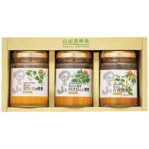「山田養蜂場 国産蜂蜜3本セット S3-BHK」 希少な国産蜂蜜のセットです。花の種類によって異なるはちみつの風味をお楽しみいただけます。パンにつけたり、砂糖の代わりに紅茶やヨーグルトにプラスするのもおすすめです。