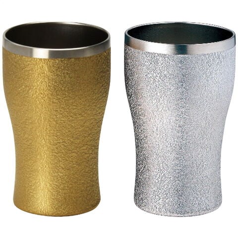 「ルミナス 真空二層タンブラーペア390ml」 金と銀に輝く贅沢な質感の真空二層タンブラー。持ちやすく手になじむくびれのあるフォルムとなっています。
