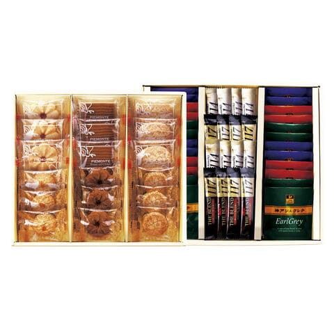 【数量・内容】クッキー(フラワー・シナモン・サクサク・レモン・ソフト・オレンジ)各3・ティーバッグ(ダージリン・セイロン・アールグレイ)各8・UCCザ・ブレンドスティックコーヒー(114・117)各8 【卵・乳成分・小麦】