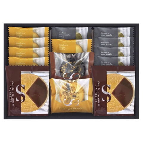 【数量・内容】ごろっとナッツフィナンシェ(バニラ・ショコラ)・ゴーフレット(チョコ)×2・ほろほろクッキー(チーズ・抹茶)各5 【卵・乳成分・小麦・くるみ】