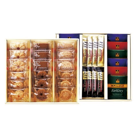【数量・内容】クッキー(フラワー・シナモン・サクサク・レモン・ソフト・オレンジ)各3・ティーバッグ(ダージリン・セイロン・アールグレイ)各4・UCCザ・ブレンドスティックコーヒー(114・117)各4 【卵・乳成分・小麦】 2セット