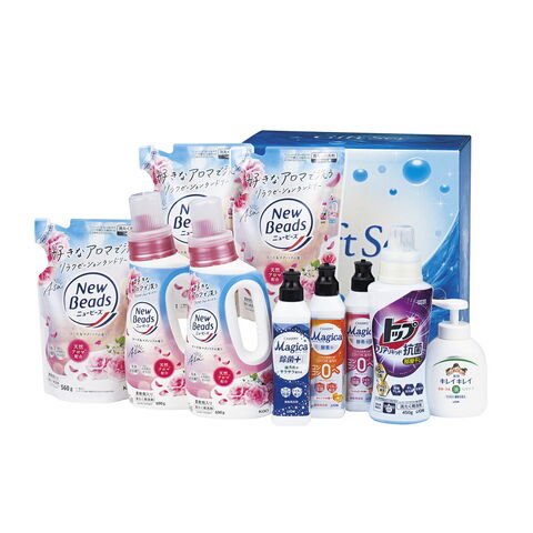【数量・内容】ニュービーズローズ&マグノリアの香り(本体690g×2・詰替560g×3)・トップクリアリキッド抗菌(本体)450g・CHARMY Magica除菌+220ml・CHARMY Magica酵素+(オレンジの香り・フレッシュピーチの香り)各220ml・キレイキレイ薬用ハンドソープ(本体)250ml