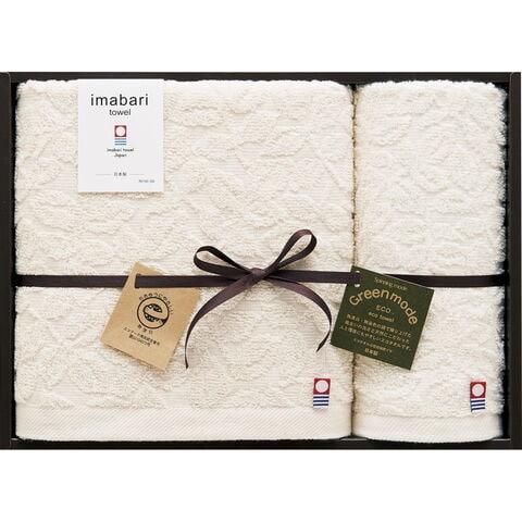 「今治タオル エコジャガードタオルセット GMT04241M」 無漂白・無染色の綿糸で丁寧に織り上げ吸水性にも優れた人や環境に優しいエコマーク取得のタオルです。