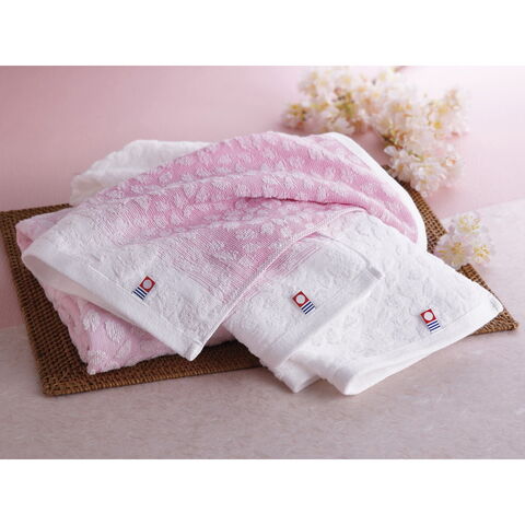「はないかだ フェイスタオル2P IM2041」 桜の花びらが埋め尽くす花筏の絶景。散った桜の花びらがひとかたまりとなって筏のように川を流れていく様子をタオルで表現しました。