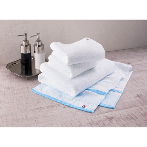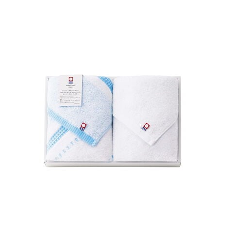 【数量・内容】白フェイスタオル×1・ワッフルボーダーフェイス ブルー×1
