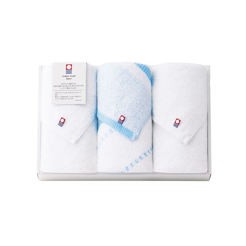 【数量・内容】白フェイスタオル×2・ワッフルボーダーフェイス ブルー×1
