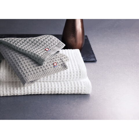 「ワッフル織」と呼ばれるマス型のこの組織は、さらりとした肌触りと優れた吸水性が特長です。使っていくうちにボリュームが増して、ふんわりしていた感触が「ふっくら」に変わっていきます。