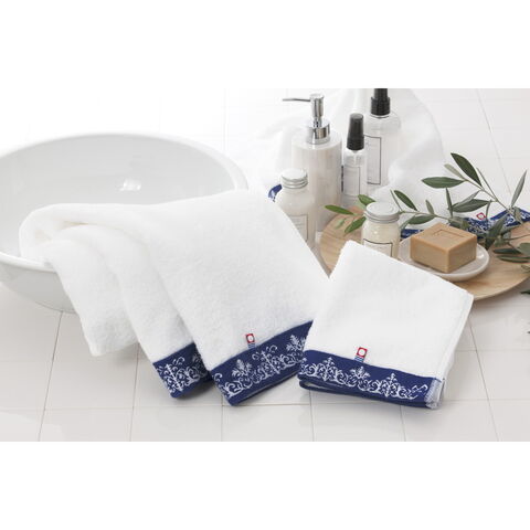 タオルの端はほつれにくいように、ロックミシン縫製で仕上げています。