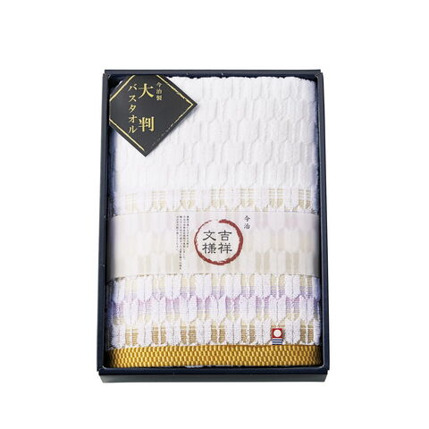 「吉祥文様 今治産 矢絣 ゆったり大判バスタオル H-3023」 縁起の良いとされる文様を今治の伝統ある技術で表現しました。職人のこだわりが詰まった上質な触り心地をぜひその肌で感じてください。