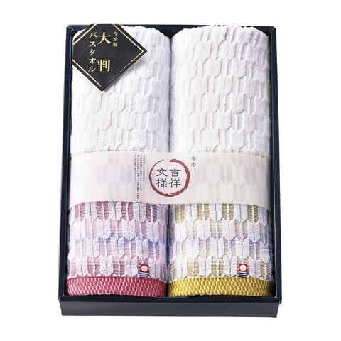 吉祥文様 今治産 矢絣 ゆったり大判バスタオル2P H-6023【北海道・沖縄県・離島 配送不可】
