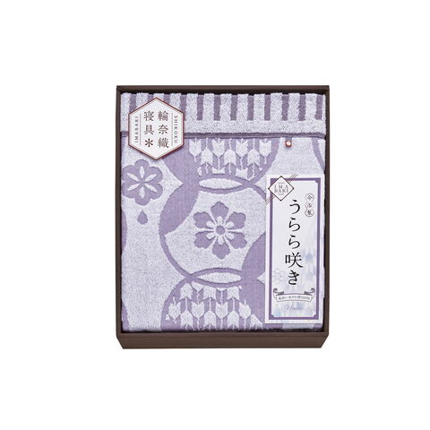 「うらら咲き」は、蒸し暑い夜でも使いやすい程よい薄さのタオルケットです。涼しげな質感に温かみのあるデザインと上品な色あいで仕上げています。タオルの産地として長い歴史を培ってきた、今治ならではのタオルケットをお楽しみください。