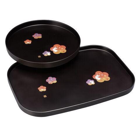 紀州塗 花舞うさぎ 丸盆・長手盆セット 2205031【北海道・沖縄県・離島 配送不可】